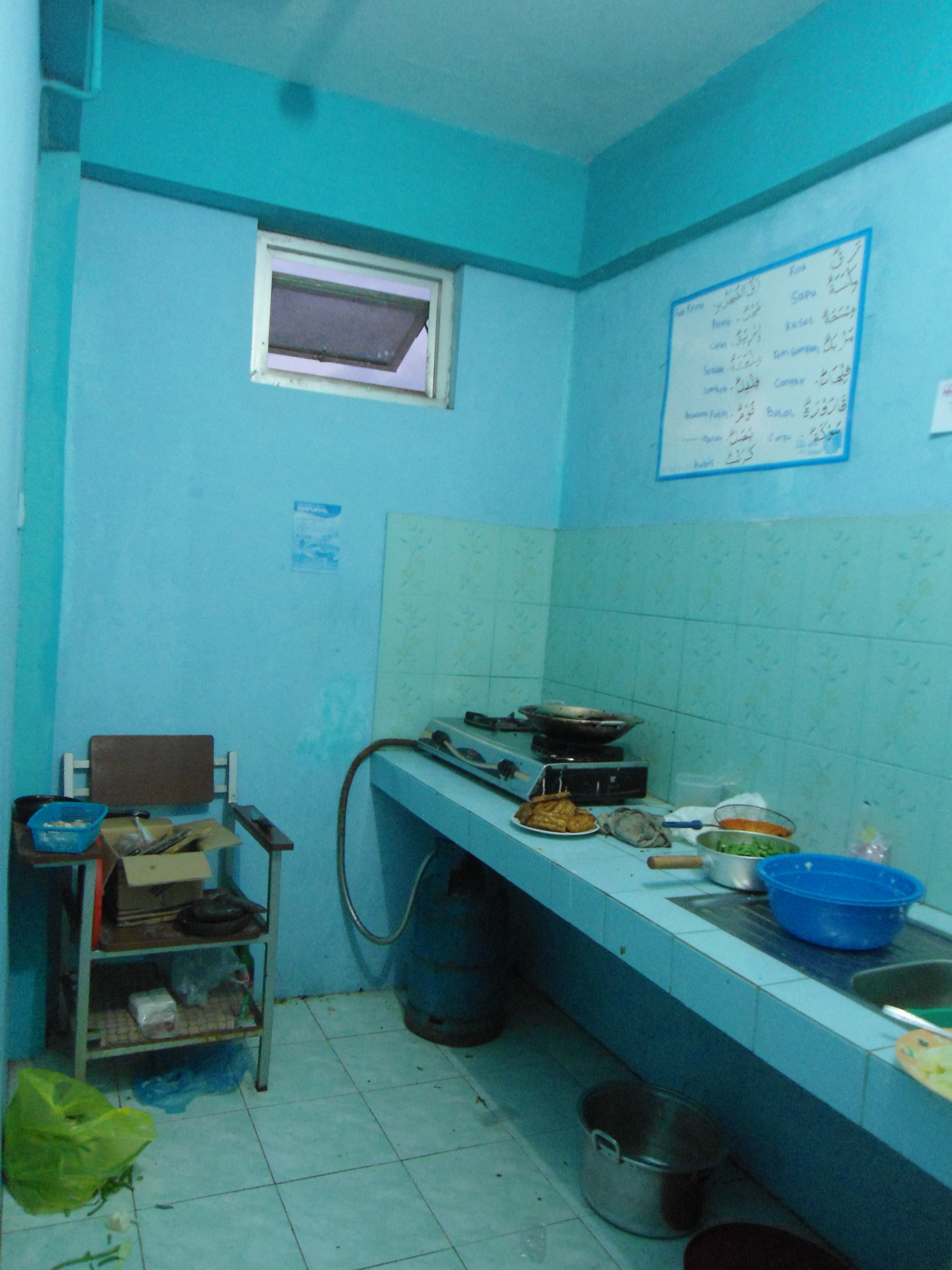 Dapur sudah tersedia dengan segala macam alat dapur, dapur terletak di tiap lantai. Dapur berisikan peralatan masak, kompor, gas dan westafel yang sudah disediakan oleh asrama.